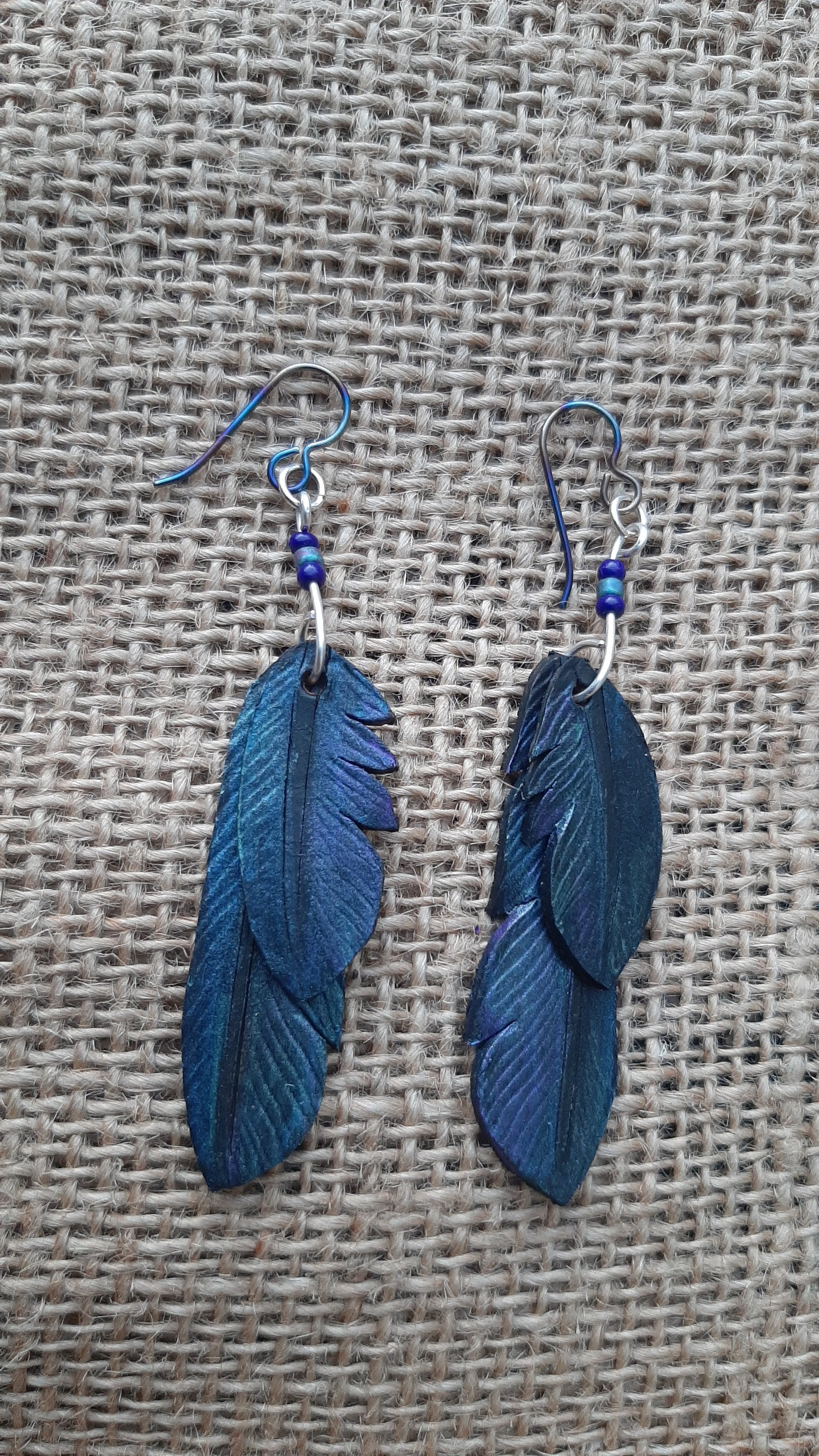 Leather feather earrings - crow