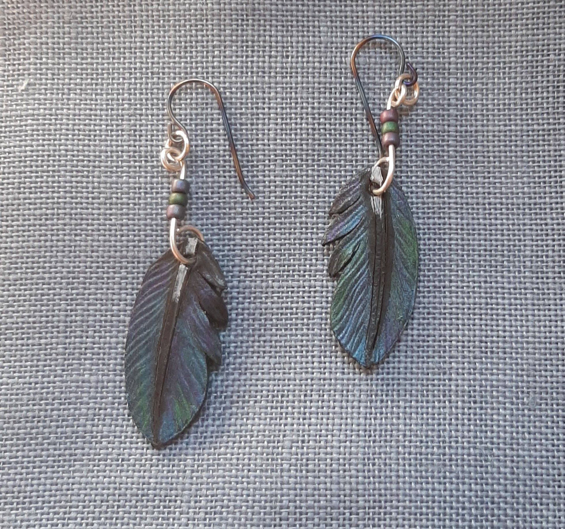 Titanium ear hooks, silver wire and jump rings.