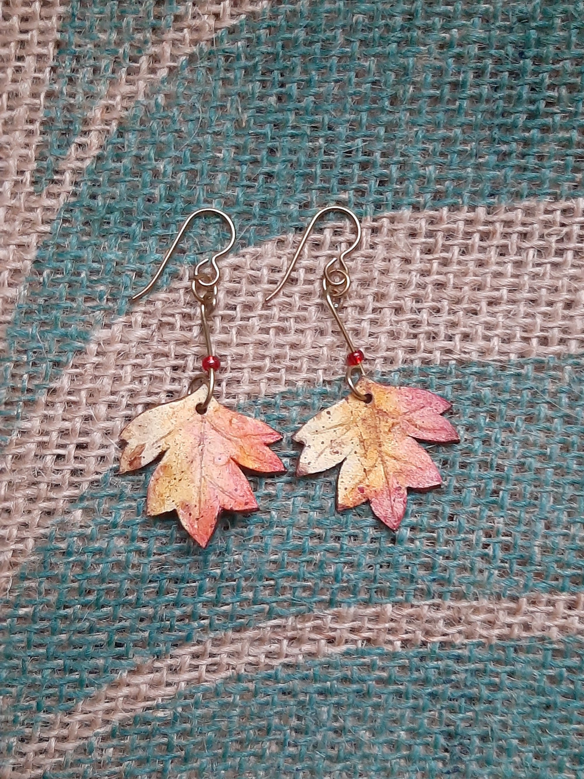 Handpainted on both sides. Anodised niobium hooks, wire and jump rings. Niobium is hypoallergenic and a good alternative to base metals. Drop approx 4.5 cm